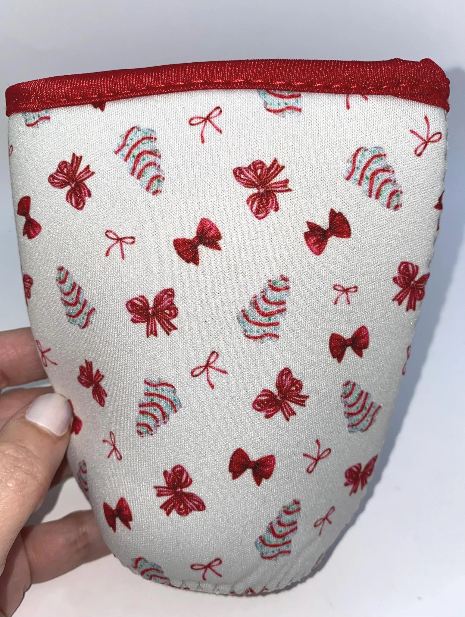 Wrap your holiday spirit around your favorite iced beverage with this charming Christmas tree and bows coffee sleeve! Designed to fit medium Dunkin' cups and Venti Starbucks drinks, it keeps your hands dry while spreading seasonal cheer. The playful festive pattern makes every sip feel like a mini celebration—because even your coffee deserves to get into the holiday mood!