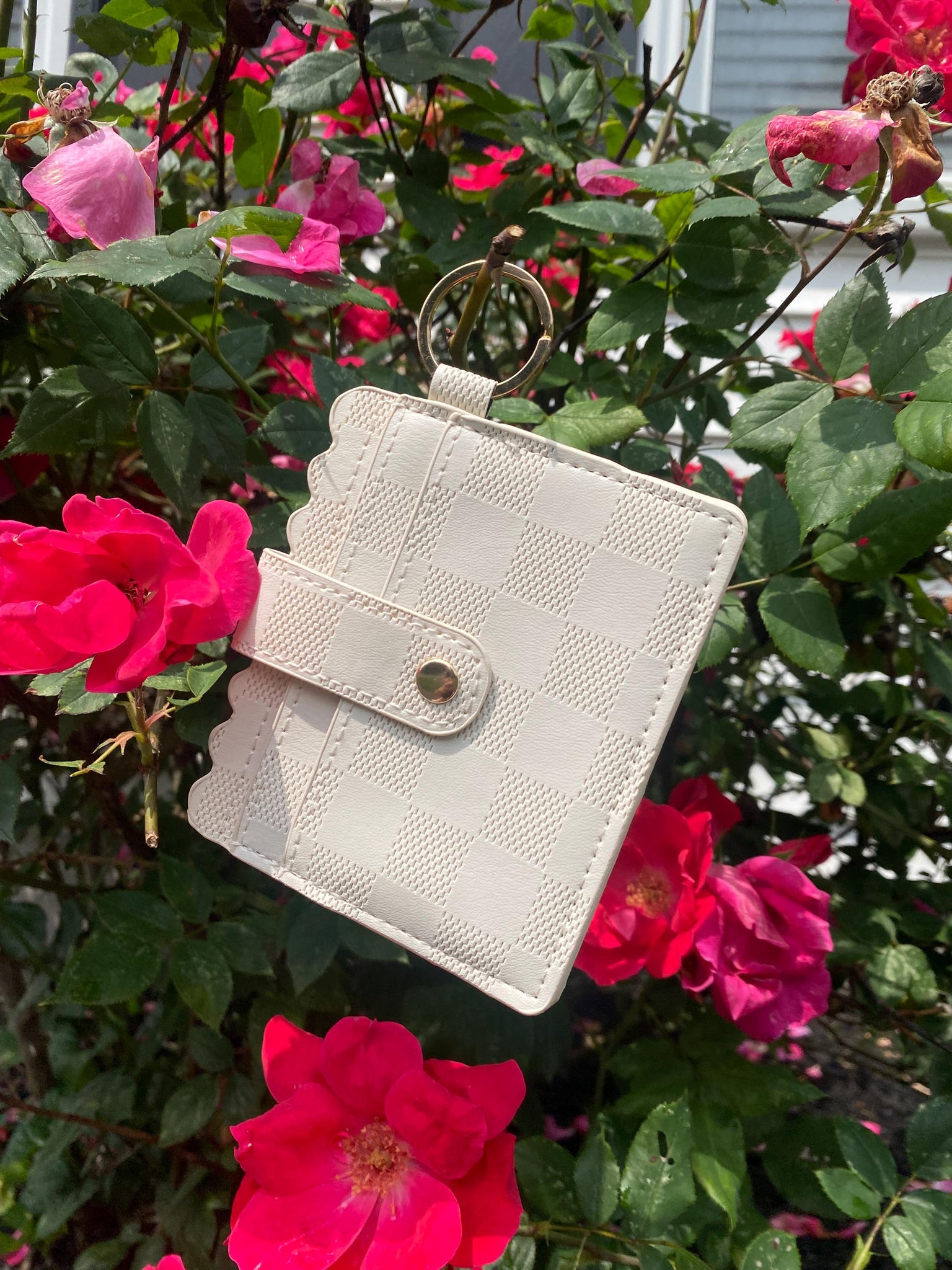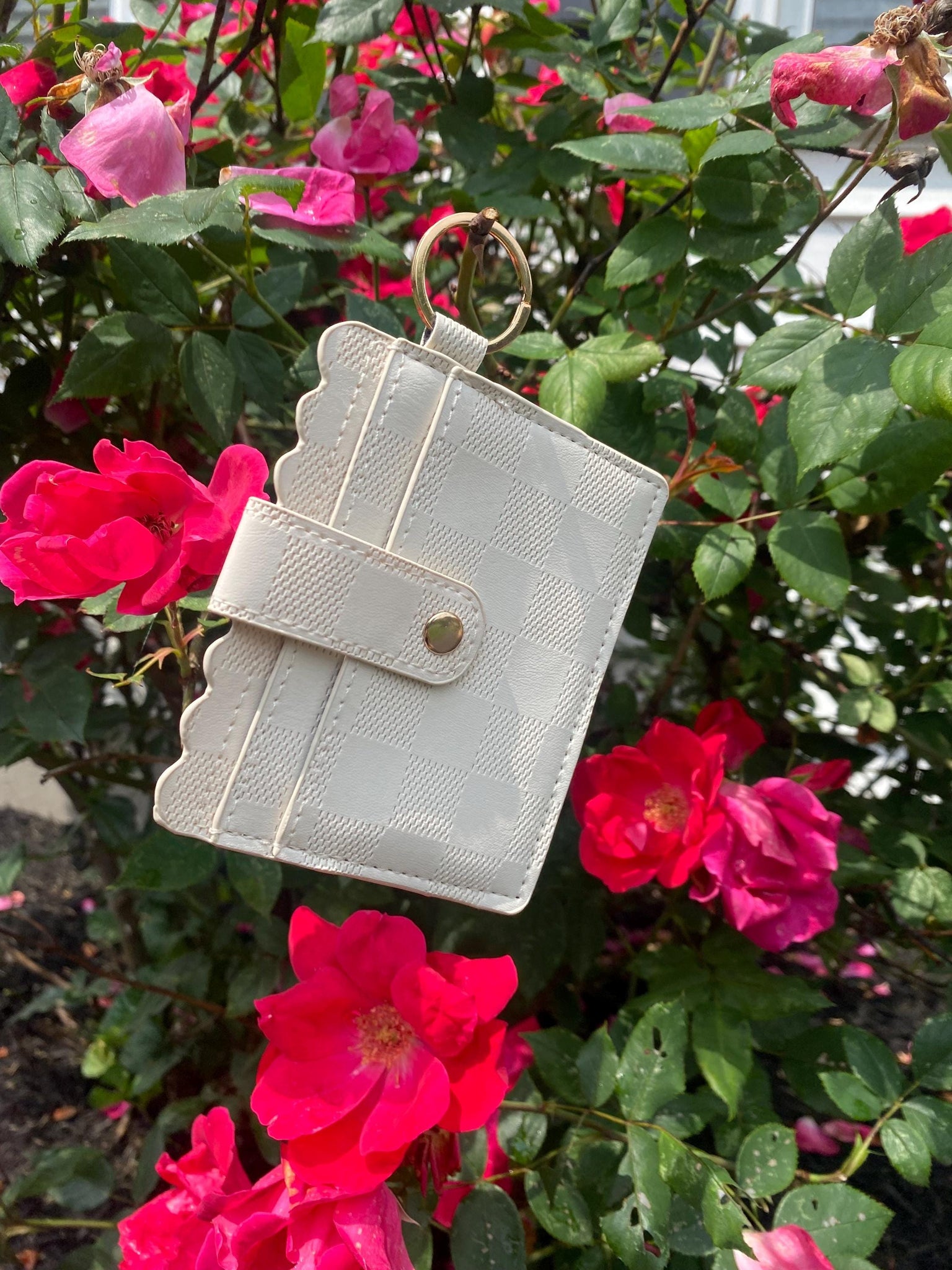 cream checkered wallet- ID Wallet