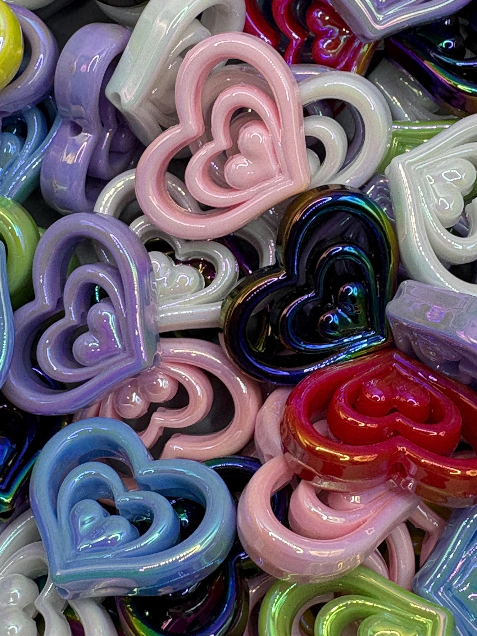3 heart acrylic focal beads