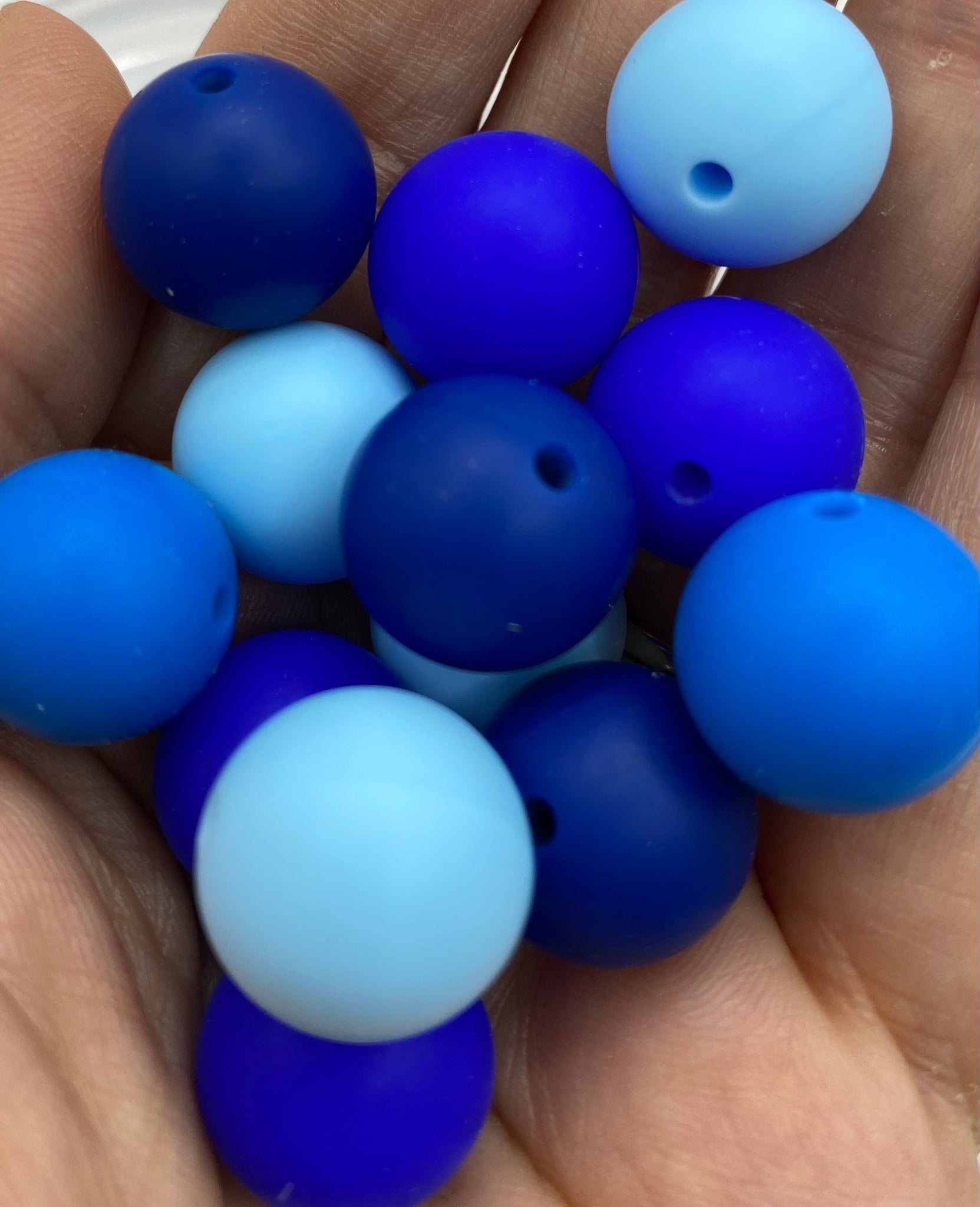 Blue Mix - Solid Round Silicone Beads - 15mm - 50 Beads
