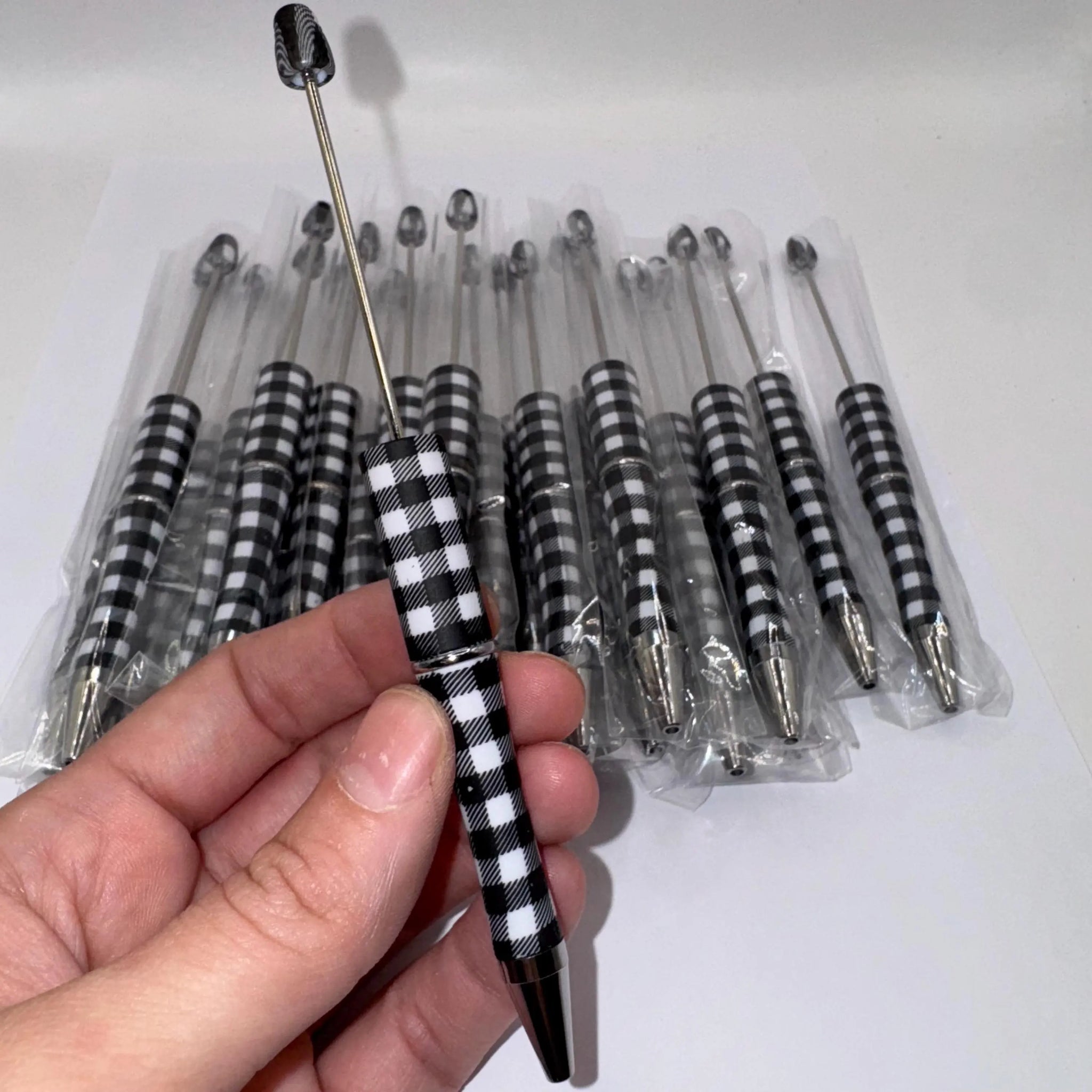 Beadable Plastic Pen, Pen Blank, DIY Pen -Black Plaid
