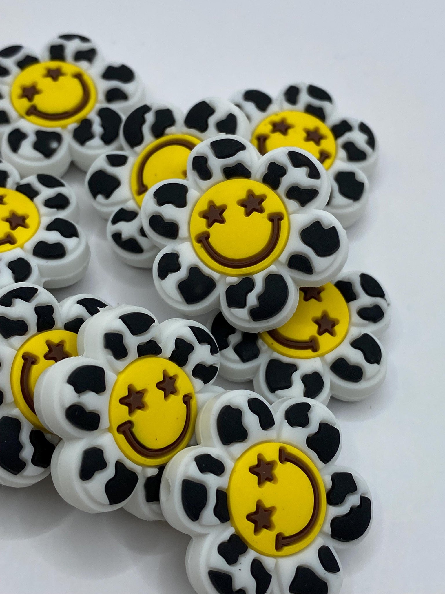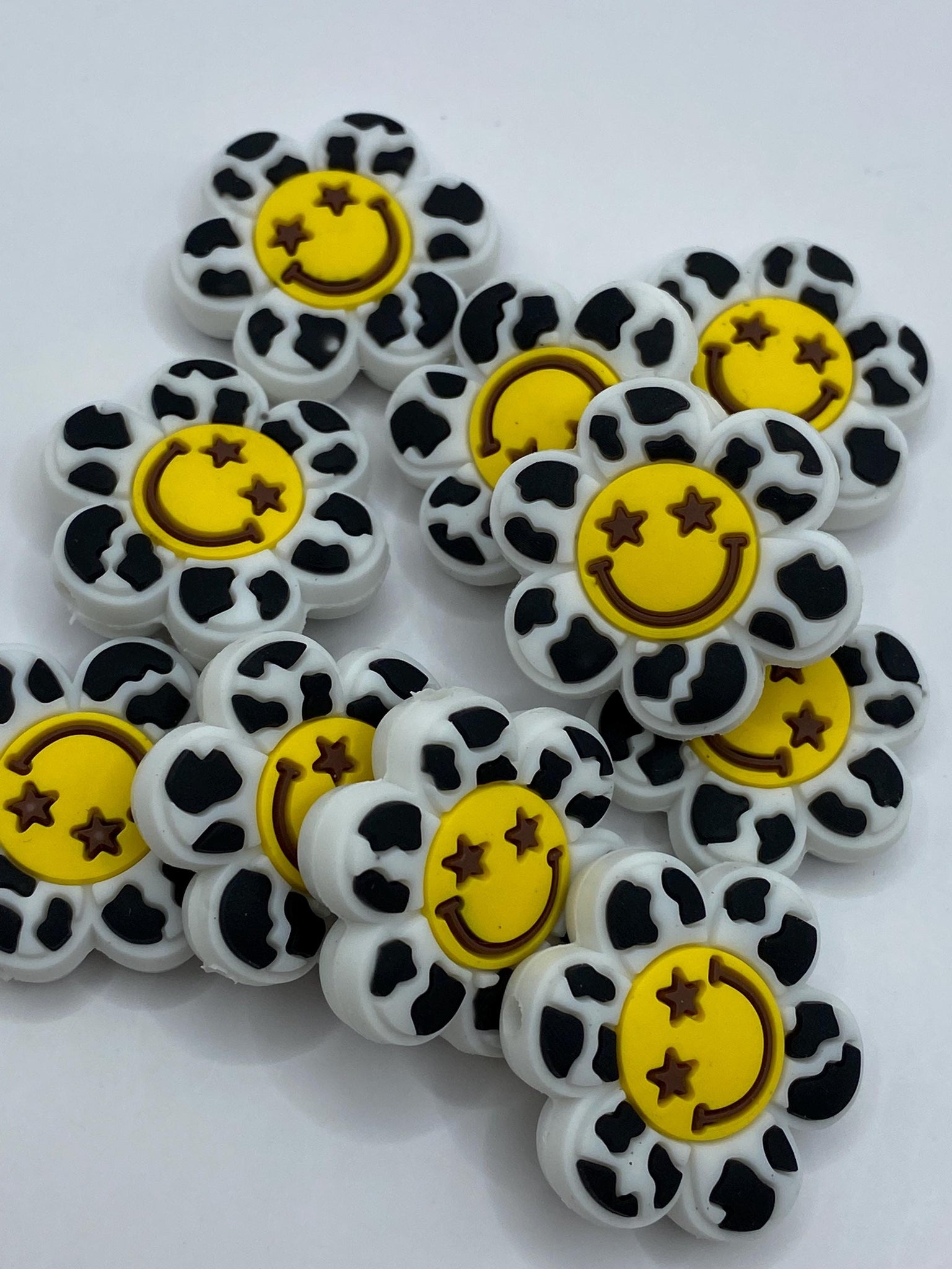 1 smile face flower focal bead - black make keychains, wristlets, pens etc…