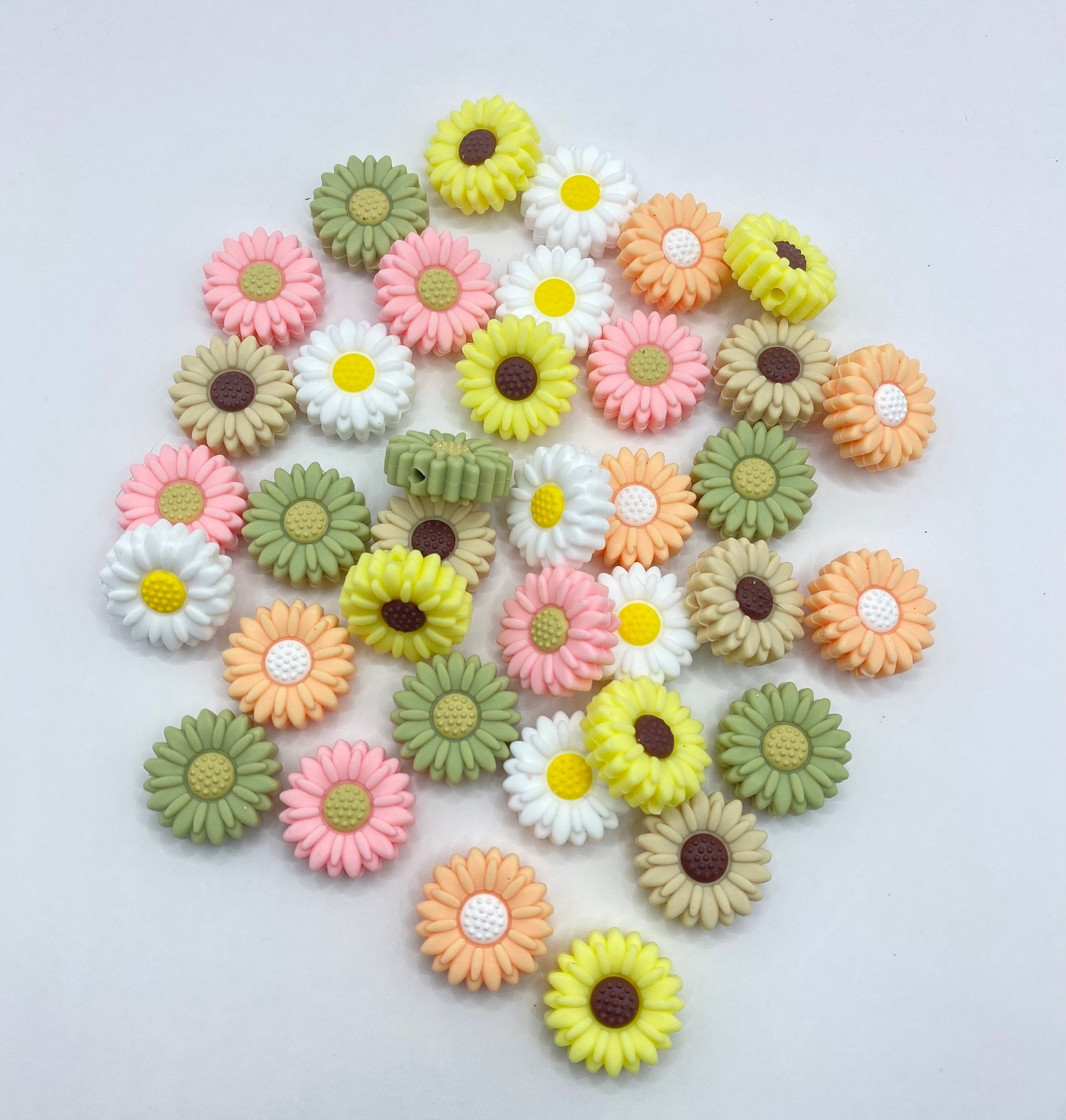 1 daisy silicone focal bead 20mm choose the color you would like from the list make keychains, wristlets, pens etc…
