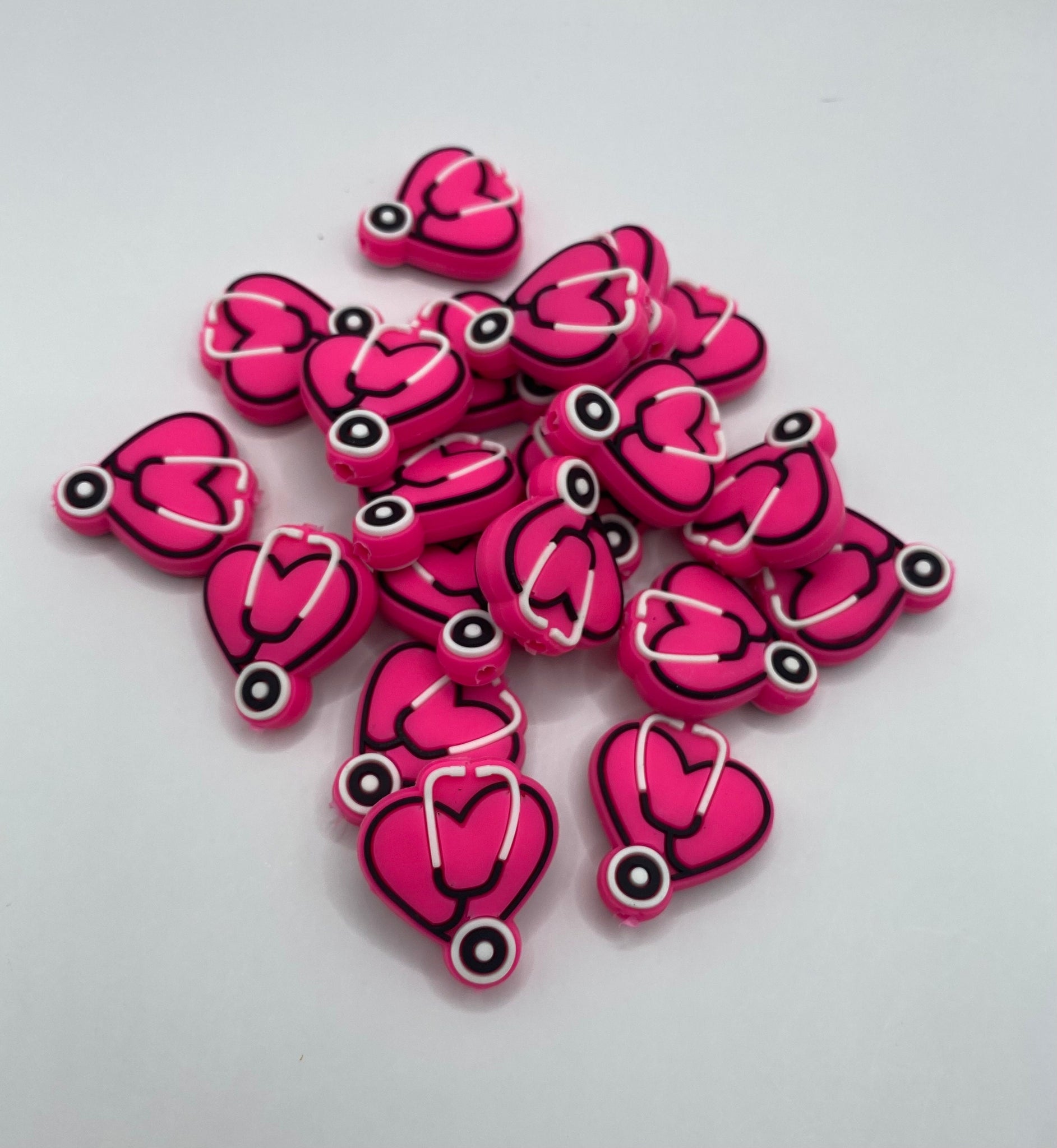 • Load image into Gallery viewer, Stethoscope Heart Silicone Focal Bead