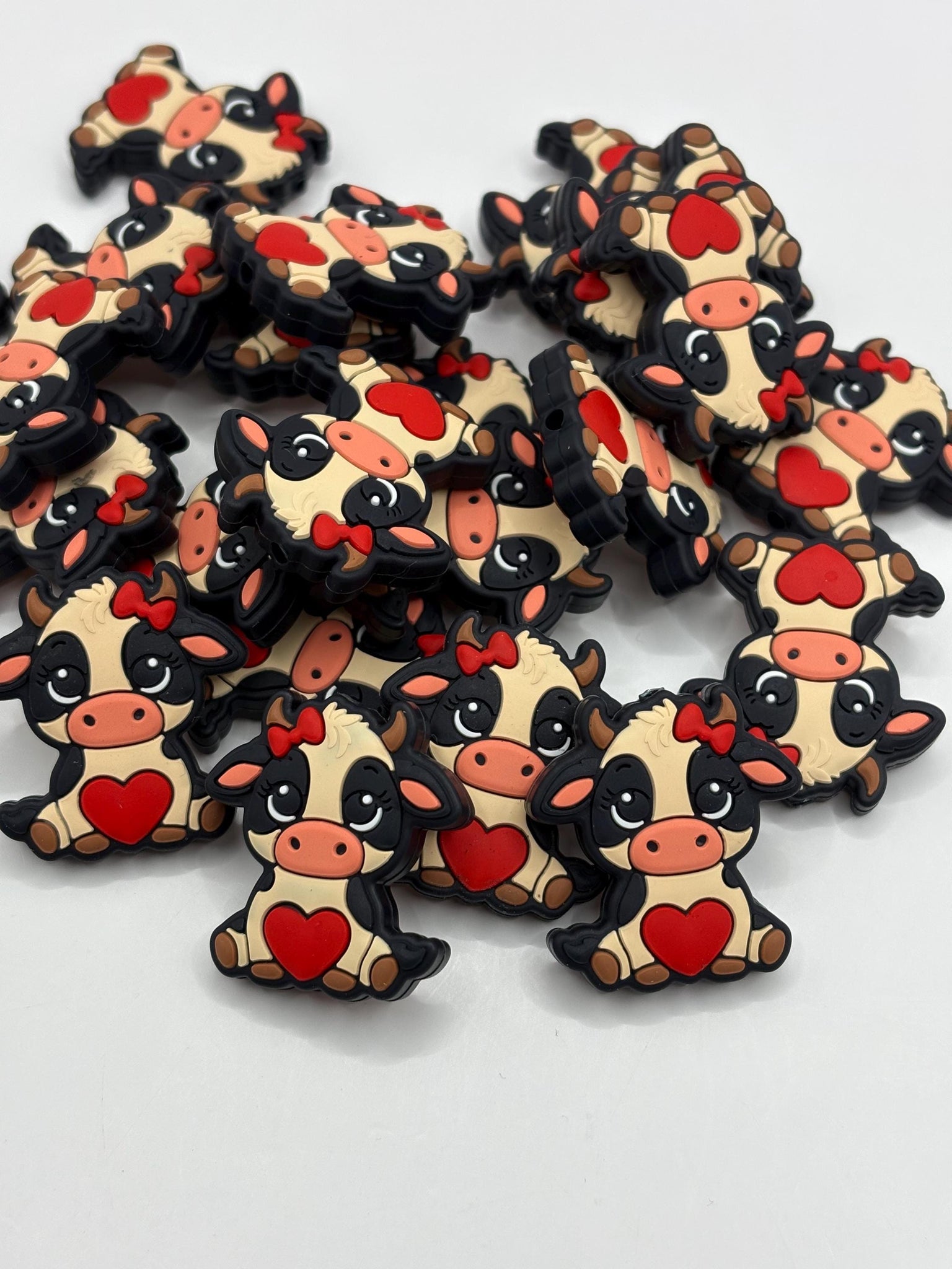 1 valentine cow silicone focal bead