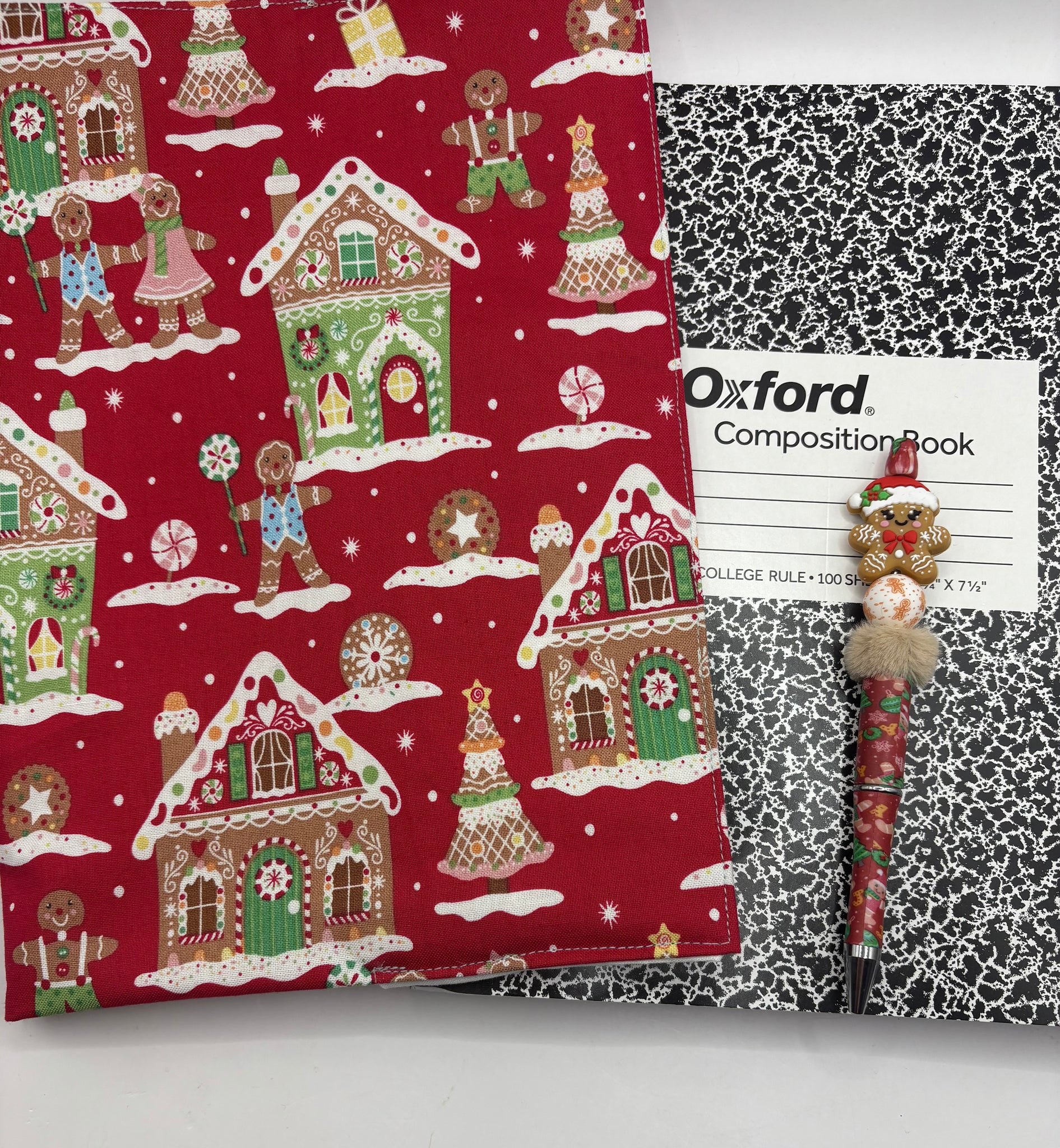 Handmade Gingerbread Man Fabric Composition Notebook Cover – Reusable, Washable & Perfect for Holiday Gifting