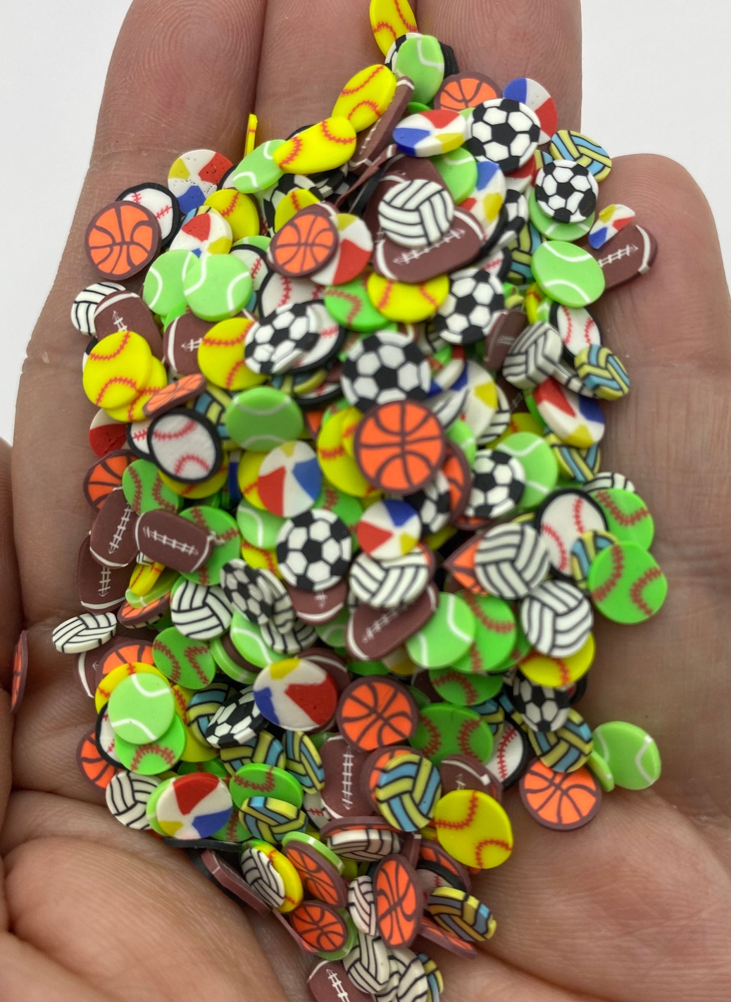 Sports Balls Polymer Clay Slices 5mm. 0.5 oz bag
