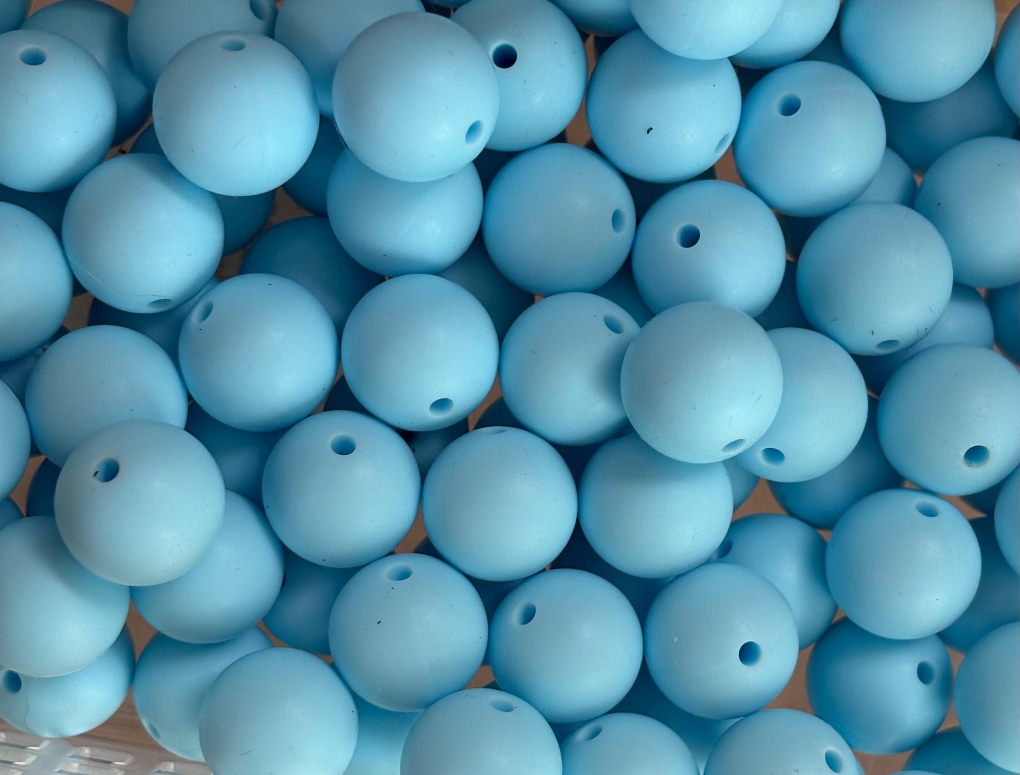 10 Light Blue Solid Round Silicone Beads - 15mm