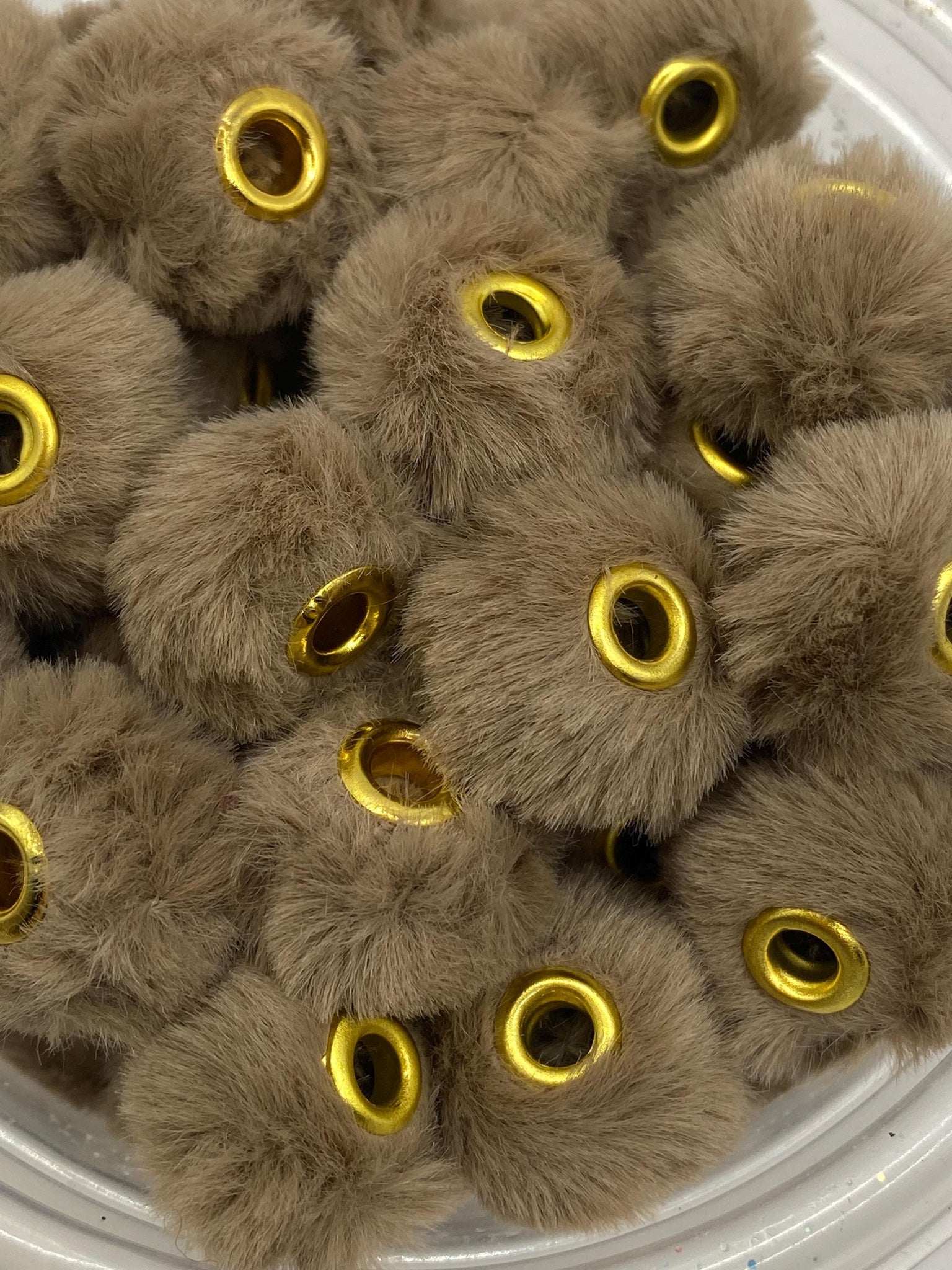 10 Fuzzy Spacer Beads - 20 mm - Brown