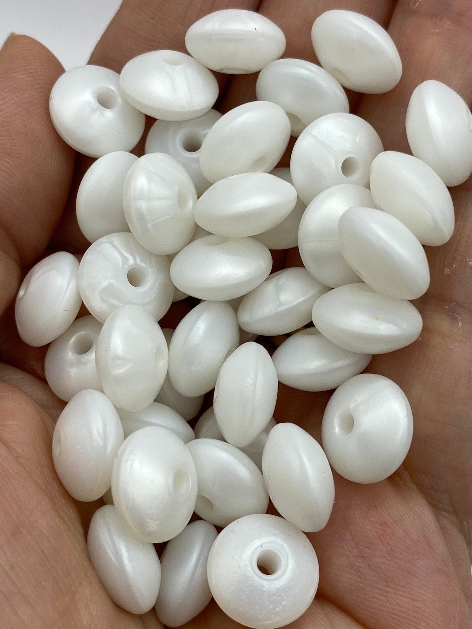 20 Pearl White Solid Silicone Lentil Beads - 12mm