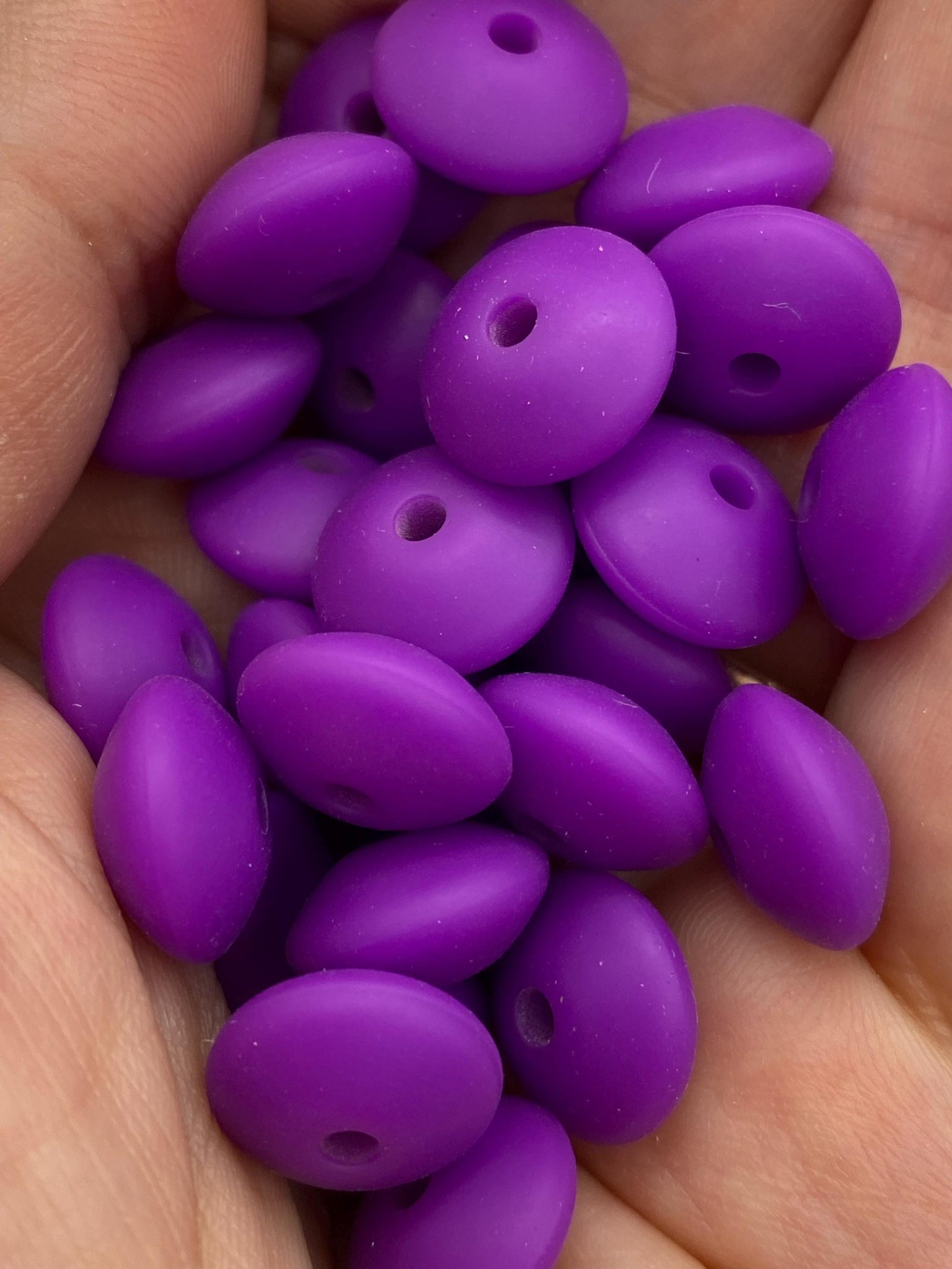 20 Purple Solid Silicone Lentil Beads - 12mm