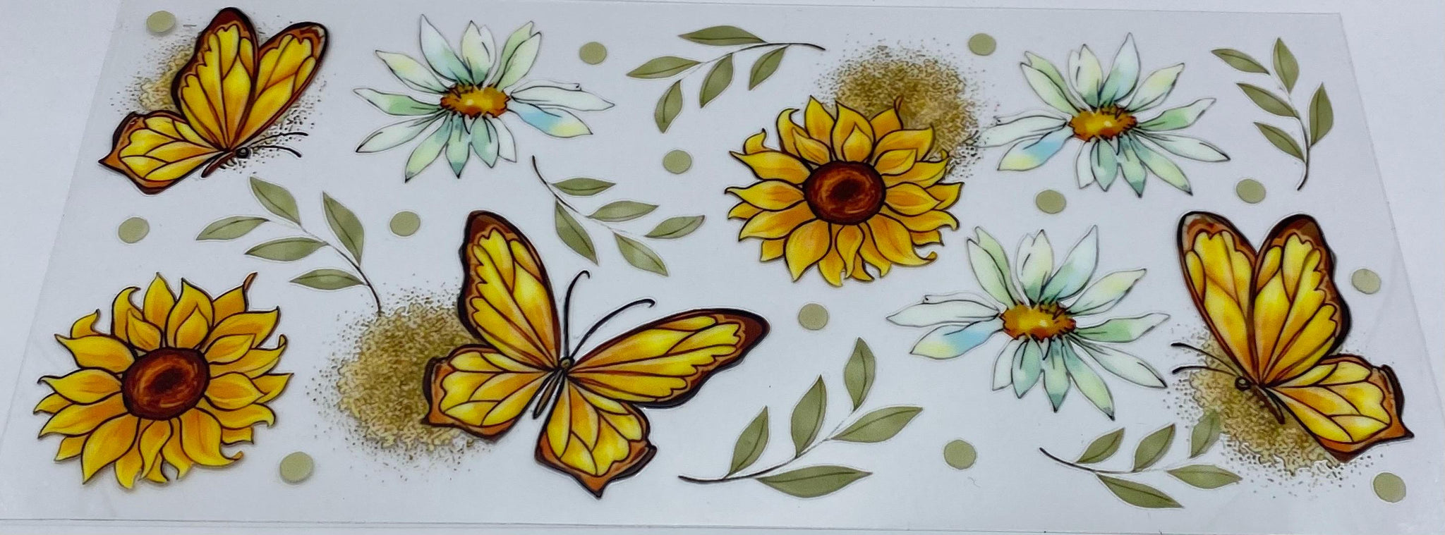 Flowers and Butterflies UV DTF 16oz cup wrap - double sided - Permanent Decal - Ready to apply