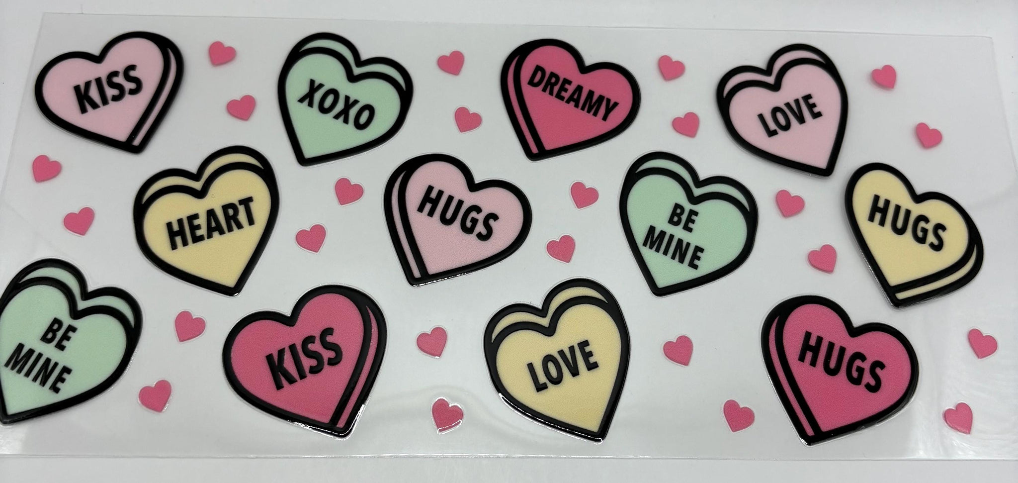 Valentine’s Day Conversation Hearts UV DTF 16oz cup wrap - double sided - Permanent Decal - Ready to apply